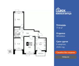 Корпус сдан! Прямая продажа от застройщика! Семейный жилой район класса Комфорт ПлюсПродаётся 3-к квартира номер 111 в сданном корпусе общей площадью 84.5 кв.м. на 7-м этаже 20 этажного дома.Особенности:- Квартира доступна к покупке в Trade-In.- Гостевой санузел- Большая кухня- Ниша под шкаф- Панорамное остекление лоджии- ЛоджияРасположение комплекса: Сочетание свободного перемещения по внутреннней территории без машин и ощущения абсолютной безопасности благодаря надежным ограждениям - вот что отличает ЖК Южная Битца. На территории комплекса созданы все условия как для активного образа жизни, так и для спокойного времяпрепровождения. Свободно перемещайтесь по внутренней территории в безбарьерной среде! Продуманное зонирование во дворах позволяет отделить тихие зоны для родителей со спящими младенцами и тех, кто хочет почитать на свежем воздухе, от шумных игровых зон. Игровые зоны учитывают возраст детей. Площадки для детей старшего возраста вынесены за пределы дворов. Ощущение уютного дома должно начинаться с подъезда. Мы постарались предусмотреть все нюансы, чтобы наши лифты отвечали самым строгим современным требованиям. А наличие кладовых позволит вам поддерживать идеальный порядок и уют в вашей квартире!Транспортная доступность:В 3 км от МКАД в нескольких минутах езды до трех станций метро: Аннино, Бульвар Дмитрия Донского, улица Старокочаловская и станции МЦД2 - жд Бутово.Внутренняя инфраструктура:Для жителей жилого района ''Южная Битца'' доступна развитая инфраструктура близлежащих московских районов Чертаново, Южное, Бирюлёво Западное, Северное Бутово и Южное Бутово. Множество образовательных учреждений, объекты здравоохранения, торговые и развлекательные центры, кинотеатры, кафе, рестораны, парки. Цены указаны с учетом скидки.