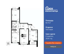 Максимальные скидки при 100% оплате.Ипотека для всех! Своя квартира от 69 300 руб/месПрямая продажа от застройщика! Семейный жилой район класса Комфорт ПлюсПродаётся 3-к квартира номер 361 общей площадью 82.9 кв.м на 5-м этаже 22 этажного дома. Чистовая отделка.Особенности:- Квартира доступна к покупке в Trade-In.- Распашная планировка - отличное сочетание удобства и свободы.- Гостевой санузел - комфорт и удобство для ваших гостей.- Просторная кухня - место для семейных ужинов и кулинарных экспериментов.- Ограниченное количество квартир на этаже - комфорт и уют без лишней суеты.- Гардеробная - удобство для хранения и организации вещей.- Ниша под шкаф - компактное и удобное место для вещей.- Лоджия - уютное место для отдыха и тишины.- Вид из окна: двор- Вид из окна: улица- 15 минут на авто до 3-х станций метро- Район в окружении лесопарка- Свои 4 детских сада, 2 школы и поликлиника- Прямой выезд на ЮВХКвартира с чистовой отделкой. Раскройте свою индивидуальность в создании своего уникального проекта, а трудоемкий ремонт мы возьмем на себя! Вы идете в ногу со временем и предпочитаете современные, универсальные дизайнерские решения? Или вы любитель строгой лаконичной классики? Тогда наши интерьеры придутся вам по душе! Выбирайте то, что ближе лично Вам и реализуйте свои задумки вместе с нами!Расположение комплекса: Сочетание свободного перемещения по внутреннней территории без машин и ощущения абсолютной безопасности благодаря надежным ограждениям - вот что отличает ЖК Южная Битца. На территории комплекса созданы все условия как для активного образа жизни, так и для спокойного времяпрепровождения. Свободно перемещайтесь по внутренней территории в безбарьерной среде! Продуманное зонирование во дворах позволяет отделить тихие зоны для родителей со спящими младенцами и тех, кто хочет почитать на свежем воздухе, от шумных игровых зон. Игровые зоны учитывают возраст детей. Площадки для детей старшего возраста вынесены за пределы дворов. Ощущение уютного дома должно начинаться с подъезда. Мы постарались предусмотреть все нюансы, чтобы наши лифты отвечали самым строгим современным требованиям. А наличие кладовых позволит вам поддерживать идеальный порядок и уют в вашей квартире!Транспортная доступность:В 3 км от МКАД в нескольких минутах езды до трех станций метро: Аннино, Бульвар Дмитрия Донского, улица Старокочаловская и станции МЦД2 - жд Бутово. Открылся участок (10й) ЮВХ и вместе с ним съезд на МКАД от ЖК.Внутренняя инфраструктура:Для жителей жилого района ''Южная Битца'' доступна развитая инфраструктура близлежащих московских районов Чертаново, Южное, Бирюлёво Западное, Северное Бутово и Южное Бутово. Множество образовательных учреждений, объекты здравоохранения, торговые и развлекательные центры, кинотеатры, кафе, рестораны, парки. Цены указаны с учетом скидки.