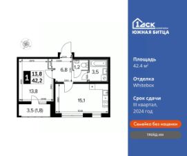 Максимальные скидки при 100% оплате.Ипотека для всех! Своя квартира от 39 400 руб/месКорпус сдан! Прямая продажа от застройщика! Семейный жилой район класса Комфорт ПлюсПродаётся 1-к квартира номер 442 в сданном корпусе общей площадью 42.4 кв.м на 20-м этаже 24 этажного дома.Особенности:- Квартира доступна к покупке в Trade-In.- Линейная планировка - максимальная функциональность и удобство.- Окно над кухонным фронтом - светлое и удобное пространство для готовки.- Увеличенное число окон- Раздельный санузел- Просторная кухня - место для семейных ужинов и кулинарных экспериментов.- Ограниченное количество квартир на этаже - комфорт и уют без лишней суеты.- Ниша под шкаф - компактное и удобное место для вещей.- Панорамное остекление лоджии - открывает вид на окружающий мир.- Лоджия - уютное место для отдыха и тишины.- Вид из окна: улица- 15 минут на авто до 3-х станций метро- Район в окружении лесопарка- Свои 4 детских сада, 2 школы и поликлиника- Прямой выезд на ЮВХРасположение комплекса: Сочетание свободного перемещения по внутреннней территории без машин и ощущения абсолютной безопасности благодаря надежным ограждениям - вот что отличает ЖК Южная Битца. На территории комплекса созданы все условия как для активного образа жизни, так и для спокойного времяпрепровождения. Свободно перемещайтесь по внутренней территории в безбарьерной среде! Продуманное зонирование во дворах позволяет отделить тихие зоны для родителей со спящими младенцами и тех, кто хочет почитать на свежем воздухе, от шумных игровых зон. Игровые зоны учитывают возраст детей. Площадки для детей старшего возраста вынесены за пределы дворов. Ощущение уютного дома должно начинаться с подъезда. Мы постарались предусмотреть все нюансы, чтобы наши лифты отвечали самым строгим современным требованиям. А наличие кладовых позволит вам поддерживать идеальный порядок и уют в вашей квартире!Транспортная доступность:В 3 км от МКАД в нескольких минутах езды до трех станций метро: Аннино, Бульвар Дмитрия Донского, улица Старокочаловская и станции МЦД2 - жд Бутово. Открылся участок (10й) ЮВХ и вместе с ним съезд на МКАД от ЖК.Внутренняя инфраструктура:Для жителей жилого района ''Южная Битца'' доступна развитая инфраструктура близлежащих московских районов Чертаново, Южное, Бирюлёво Западное, Северное Бутово и Южное Бутово. Множество образовательных учреждений, объекты здравоохранения, торговые и развлекательные центры, кинотеатры, кафе, рестораны, парки. Цены указаны с учетом скидки.