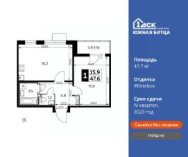 Максимальные скидки при 100% оплате.Ипотека для всех! Своя квартира от 39 400 руб/месКорпус сдан! Прямая продажа от застройщика! Семейный жилой район класса Комфорт ПлюсПродаётся 1-к квартира номер 62 в сданном корпусе общей площадью 47.7 кв.м на 17-м этаже 20 этажного дома.Особенности:- Квартира доступна к покупке в Trade-In.- Линейная планировка - максимальная функциональность и удобство.- Раздельный санузел- Евроформат - просторное и удобное жилье с отличной планировкой.- Просторная кухня - место для семейных ужинов и кулинарных экспериментов.- Ограниченное количество квартир на этаже - комфорт и уют без лишней суеты.- Ниша под шкаф - компактное и удобное место для вещей.- Панорамное остекление лоджии - открывает вид на окружающий мир.- Лоджия - уютное место для отдыха и тишины.- Вид из окна: улица- 15 минут на авто до 3-х станций метро- Район в окружении лесопарка- Свои 4 детских сада, 2 школы и поликлиника- Прямой выезд на ЮВХРасположение комплекса: Сочетание свободного перемещения по внутреннней территории без машин и ощущения абсолютной безопасности благодаря надежным ограждениям - вот что отличает ЖК Южная Битца. На территории комплекса созданы все условия как для активного образа жизни, так и для спокойного времяпрепровождения. Свободно перемещайтесь по внутренней территории в безбарьерной среде! Продуманное зонирование во дворах позволяет отделить тихие зоны для родителей со спящими младенцами и тех, кто хочет почитать на свежем воздухе, от шумных игровых зон. Игровые зоны учитывают возраст детей. Площадки для детей старшего возраста вынесены за пределы дворов. Ощущение уютного дома должно начинаться с подъезда. Мы постарались предусмотреть все нюансы, чтобы наши лифты отвечали самым строгим современным требованиям. А наличие кладовых позволит вам поддерживать идеальный порядок и уют в вашей квартире!Транспортная доступность:В 3 км от МКАД в нескольких минутах езды до трех станций метро: Аннино, Бульвар Дмитрия Донского, улица Старокочаловская и станции МЦД2 - жд Бутово. Открылся участок (10й) ЮВХ и вместе с ним съезд на МКАД от ЖК.Внутренняя инфраструктура:Для жителей жилого района ''Южная Битца'' доступна развитая инфраструктура близлежащих московских районов Чертаново, Южное, Бирюлёво Западное, Северное Бутово и Южное Бутово. Множество образовательных учреждений, объекты здравоохранения, торговые и развлекательные центры, кинотеатры, кафе, рестораны, парки. Цены указаны с учетом скидки.