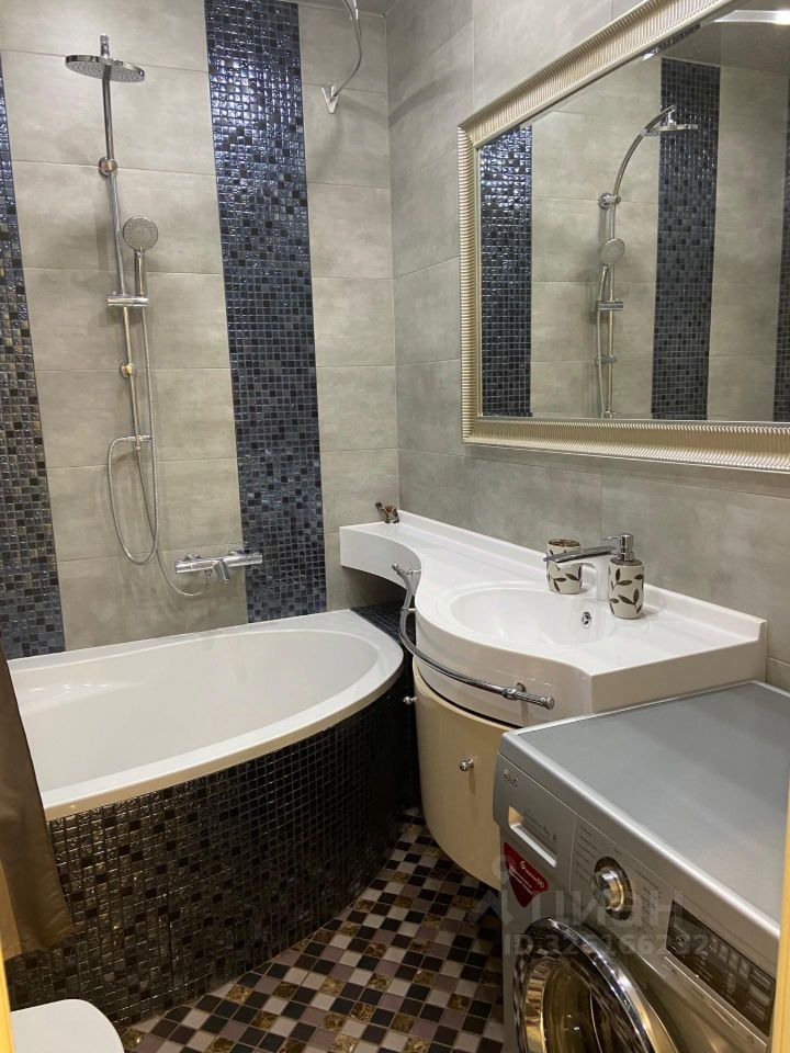 Сдаётся 1-комнатная квартира площадью 50 кв.м. с дизайнерским ремонтом на 4 этаже в 17-этажном доме. Из техники есть: Телевизор Духовой шкаф Стиральная машина Холодильник Посудомоечная машина Кондиционер Микроволновка Пылесос Дом - монолитный, окна выходят во двор. Есть консьерж. В подъезде 4 лифта - 1 грузовой и 3 пассажирских. Есть подземная парковка. Коммунальные услуги по счетчикам оплачиваются дополнительно. Мы проверили документы на квартиру и самостоятельно сделали фотографии и 3D-тур. Без комиссии агенту: цена в объявлении окончательная. За эту квартиру можно платить даже кредитной картой и получать кэшбэк от банка.