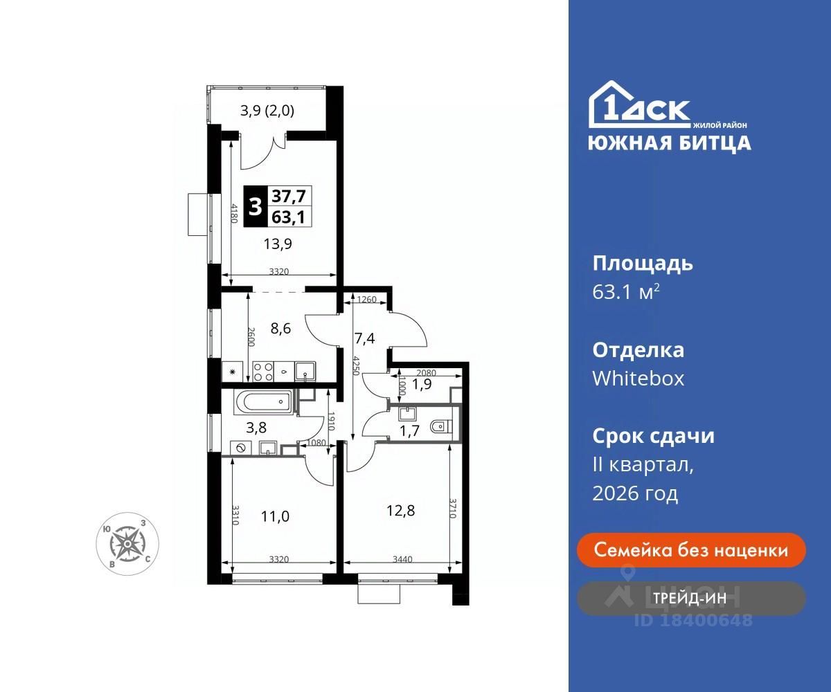 продам 3-к, Южная Битца ЖК, 1016 021 090 ₽