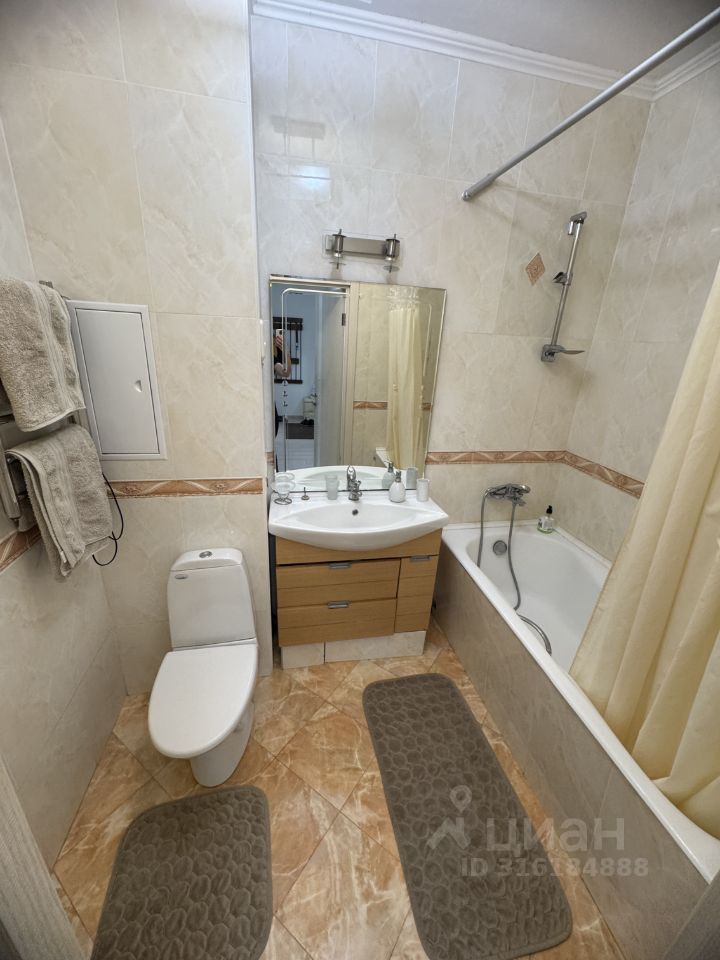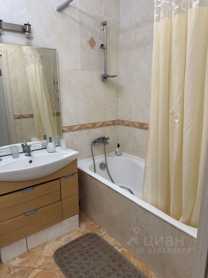 В квартире сделан косметический ремонт, что создаёт приятную атмосферу для жизни. Просторная кухня площадью 16 кв. м оснащена всей необходимой мебелью и техникой, включая холодильник и стиральную машину. В комнатах тоже есть мебель, а окна выходят во двор, что обеспечивает тишину и спокойствие. Ванная комната оборудована ванной, а санузел совмещённый. В квартире есть телевизор и интернет, что делает её комфортной для проживания.