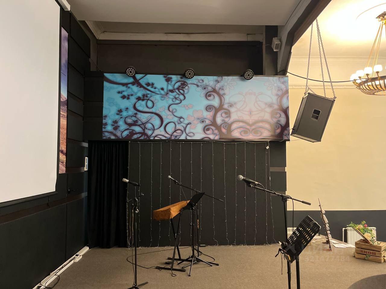 2й этаж, с отоплением. Сцена, зрительный зал, место для музыкантов