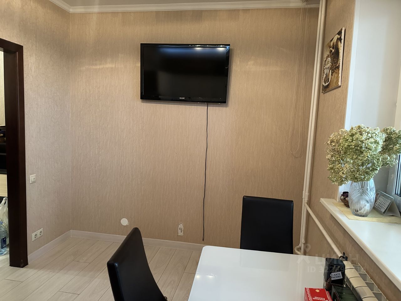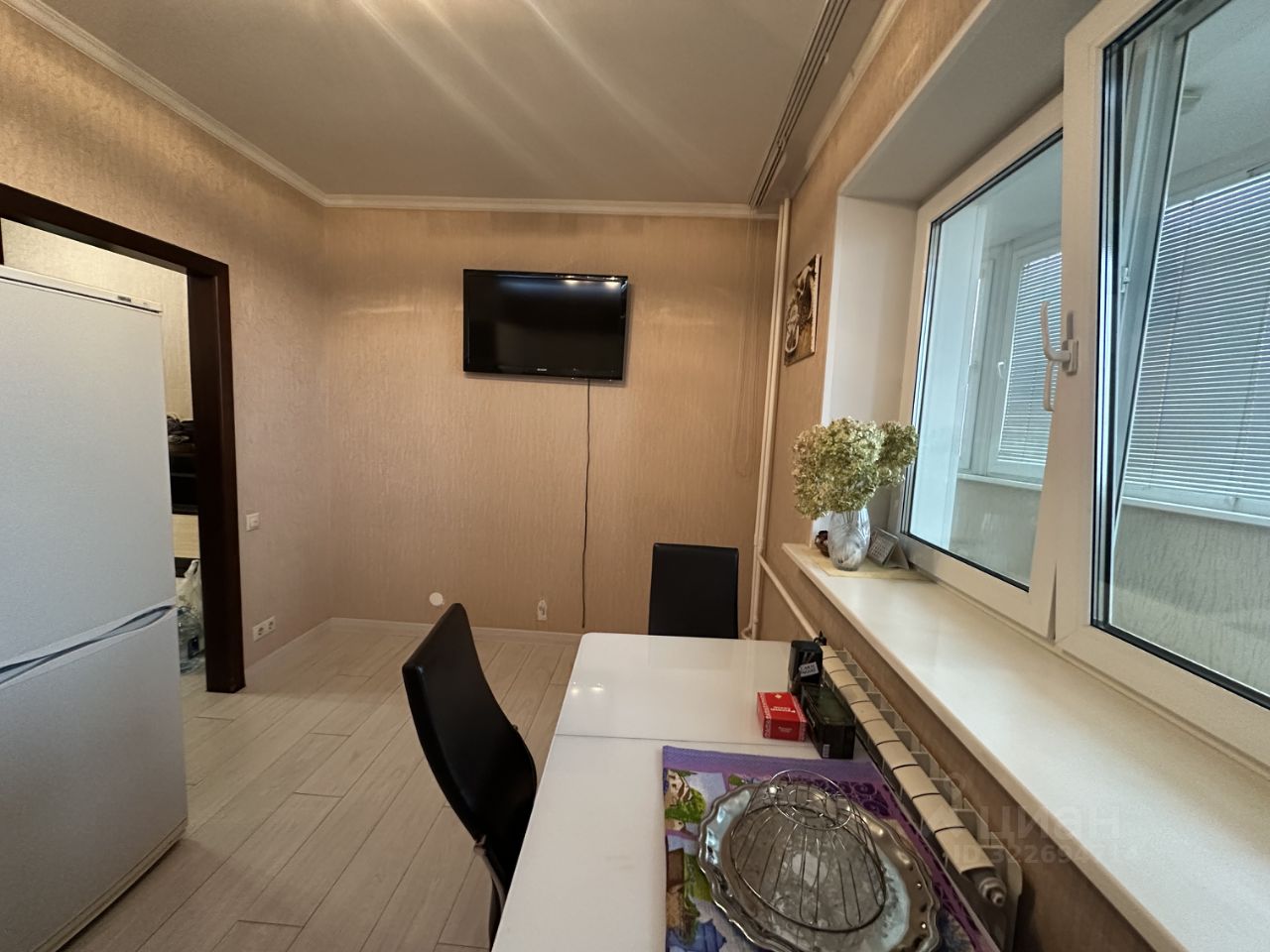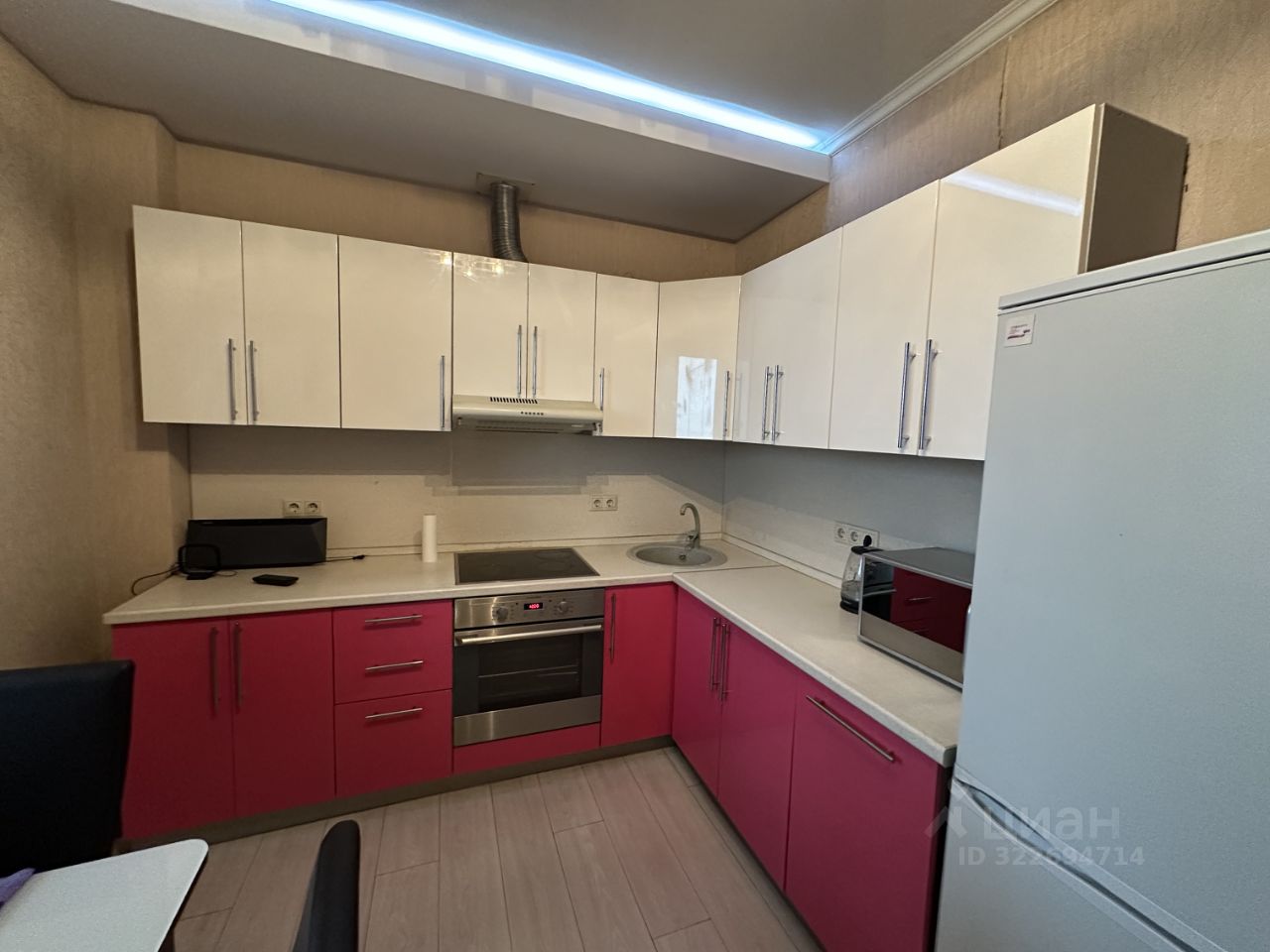 И встроенной техникой: стиральная машинка ''Haier'', посудомоечная машинка ''Zanussi'', холодильник ''Atlant'', микроволновая печь ''Bork'', телевизор ''Sharp'', электрическая варочная панель, духовой шкаф ''Electrolux'', вытяжка, кондиционер ''LG''.