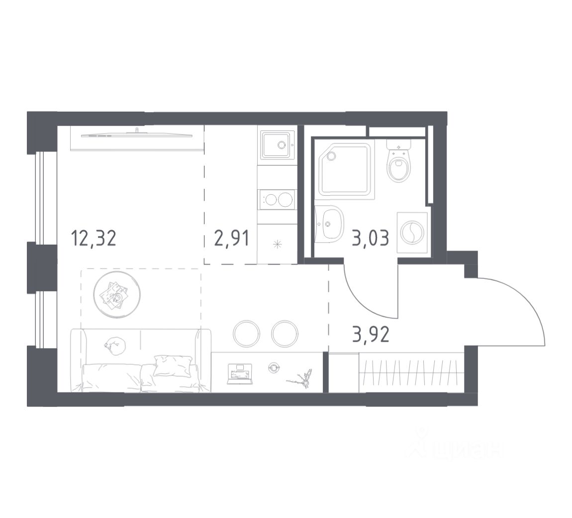 Общая площадь22,18 м2